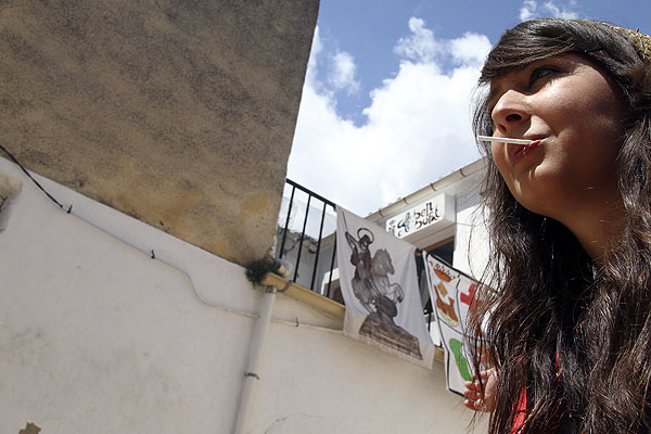 Una de les representants de la filà, Sara Payà Pla, pujant cap al castell.