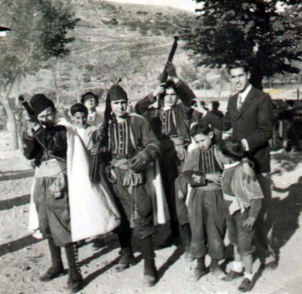 D'esquerra a dreta, César Murcia Lillo; Antonio Sanjuán Navarro, "Sacà"; Francisco Navarro Sanjuán i Paco, fill de Luzgarda la modista.