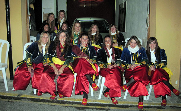 D'esquerra a dreta, Lourdes Mayor; María Ribera; M. Ascensión Ferre; Anna Murcia; Esther Albero; Sara Izquierdo; Mariola Silvestre; Carolina Ribera; Beatriz Soriano i Inma Albero. Com que la pluja va obligar a suspendre el Cercavila del dia 22, la Comissió de Festes va decidir traslladar l'acte al dia 24 d'abril.