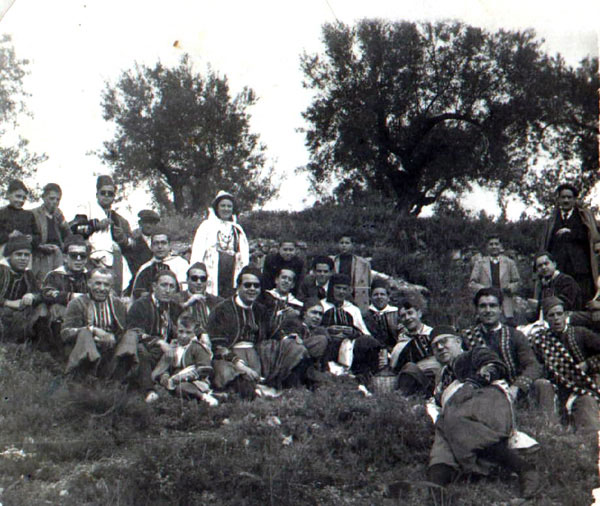 Capitania de Ramón Miró Sanjuán. D'esquerra a dreta, Francisco Belda "Sandàrio", Vicente Pla "Paibó", dret, Alberto Belda, Antonio Mataix "Serrella", Francisco Avellán, José Pascual "Perolit", José M. Pascual Vañó, Vicente i Eudaldo Mataix Pascual, Vicente Puerto, Primitivo Pla, Quico "el Conill", Ricardo Berenguer, José Albero Puig "Tronsa", Casimiro Jordá, Fernando Murcia, José Albero "Tronsa", de paisà Valentín Dobón i banderera [?]. Els dos moros vells: Felipe "el de les Macianes" i Pere "els Oms".