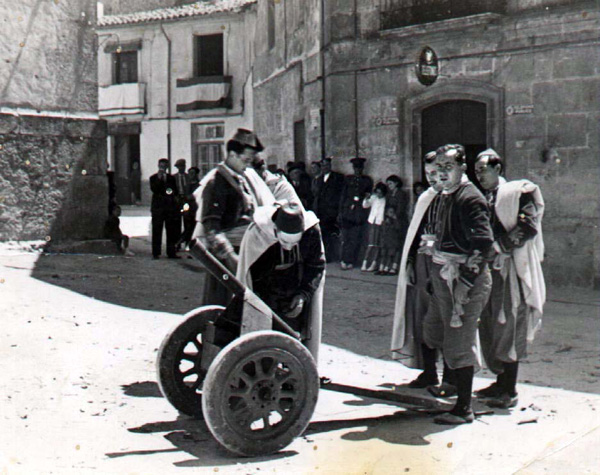 Amb el canó dels Marrocs, d'esquerra a dreta, Juan Blanquer Pascual, "Ibero"; Alonso Molina; Francisco Beneyto Fillol, "Suc"; Alfonso Albero Puig i [?]. Darrere, el cantó del carrer Sant Jordi i el local de "Teléfonos"