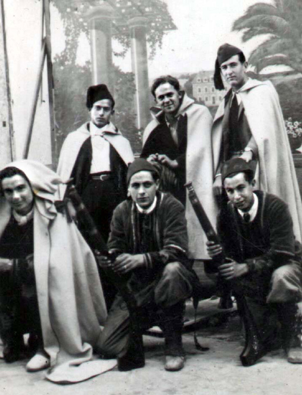 D'esquerra a dreta, Francisco Esplugues Bernàcer; Enrique Albero, "Governador"; Ramón Sanjuán Navarro; Jorge Calatayud, "Roig el carnisser"; Vicente, "de Sueca" i Francisco Beneyto Fillol, "Suc".