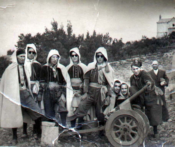 D'esquerra a dreta, Pedro Belda Vañó, "el de Fèlix"; Vicente Puerto Puerto; José Pascual Calabuig, "el roig de Perolit"; Ricardo Berenguer Ferre; Dámaso Francés Molina; David Pascual Soria; [?]; Juan Blanquer Pascual, "Ibero" i José Ferre, "Safranero".